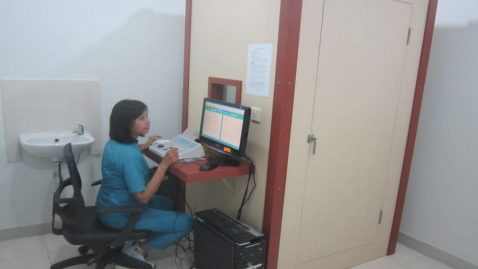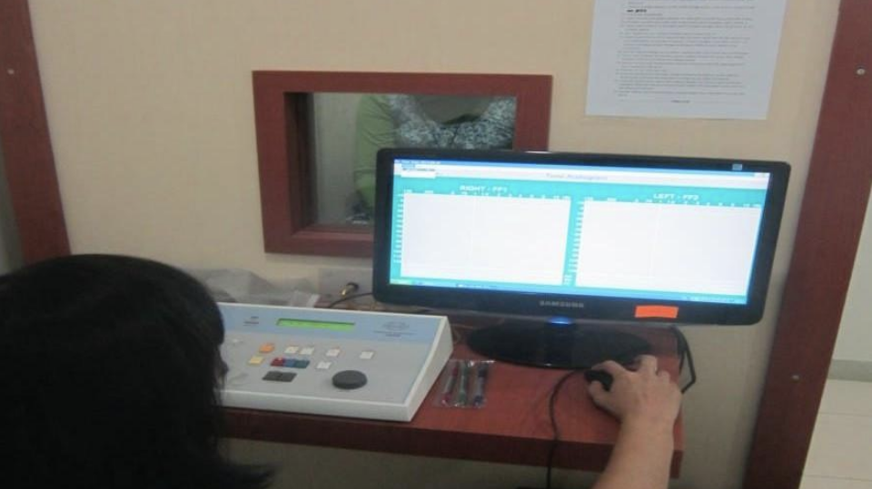 Examination results read by the ENT Specialist. Audiometer instruments and audiometric
