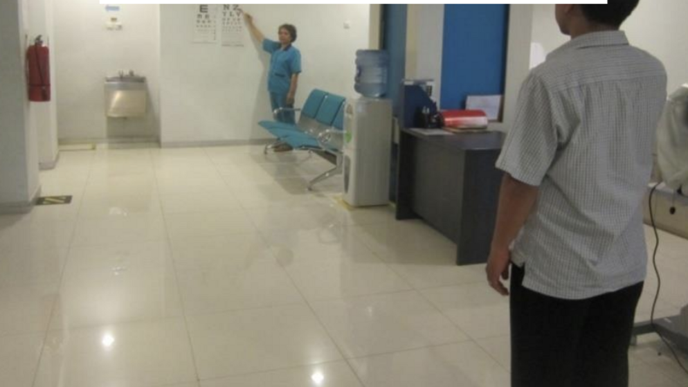 Basic eye examination conducted by nurses and refraction staff. The tests include: Snellen test (for